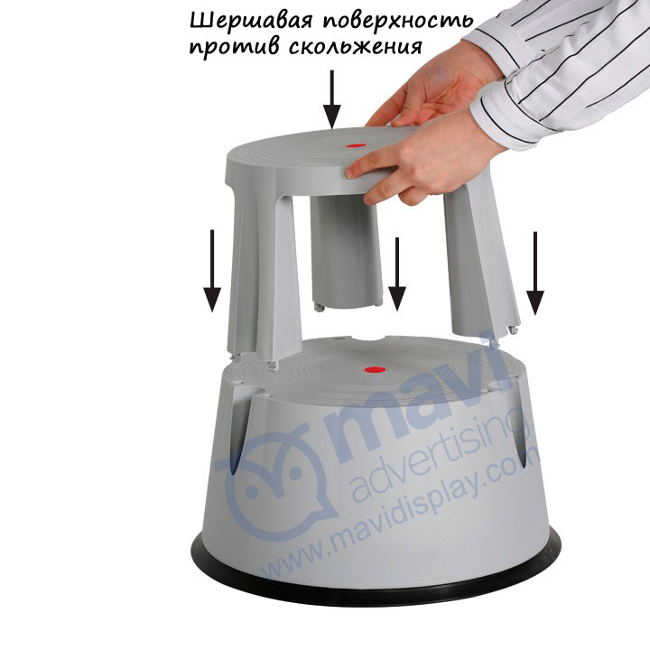 Табурет — стремянка — это надежный и незаменимый продукт, для каждодневного использования. Сколько раз мы сталкиваемся с тем, что нужный нам предмет находится слишком высоко и обычно под рукой находится лишь стул, табурет или лестница, что не всегда функционально и тем более безопасно. Что уж говорить о больших магазинах и торговых центрах, где постоянно нужно раскладывать товар или, например, сельском хозяйстве: покрасить стены, вкрутить лампочку и еще миллион таких нужных дел, которые невозможно исполнить если у вас нет под рукой стремянки. Мы предлагаем выход из любой из вышеизложенной ситуации: удобный пластиковый стульчик-стремянка как нельзя лучше подойдет для быстрого поднятия наверх. Компактный по размеру, сделанный из качественного пластика, который выдерживает вес до 150 кг, удобно складывать, хранить и передвигать при помощи встроенных колесиков. Чувствуйте себя всегда в безопасности на высоте: в офисе, библиотеке, магазине, дома.